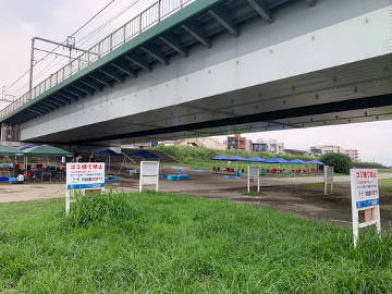 神奈川県川崎市にある丸子橋近隣多摩川河川敷です。中原街道一つ上流の東横線高架下がバーベキューエリアとなります。 周辺河川敷によって川崎市管理と国土交通省管理に分かれており、川崎市管理の場所バーベキューは禁止となります。 ご利用時はご注意ください。